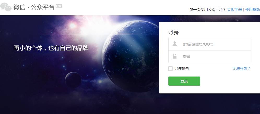 我们个人的微信好友越来越多,活跃度也越来越高,但是我们那些拥有个人公众号的小伙伴们是不是还在发愁自己的粉丝为什么这么少?发个文章都没有几个人看? 咳咳!先别哭!现在福利来了,教你简单几步,轻松把微友搬到你的公众平台去,吸引更多的粉丝到你平台。(那你倒是说啊!) 把微友装入你的微信平台拢共分三步! 第一步:你要有一个公众平台的帐号(说的不是废话嘛!)