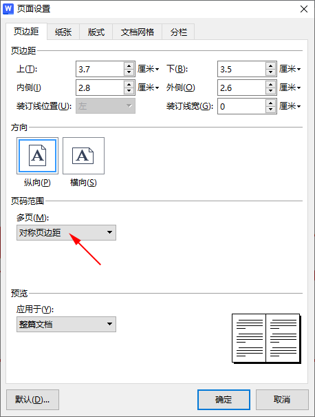 按照政府机关公文格式要求,若直接使用固定左边距28mm,右边距26mm的页边距设置,在双面打印(长边翻页)时,会导致奇偶页的“翻口”与“订