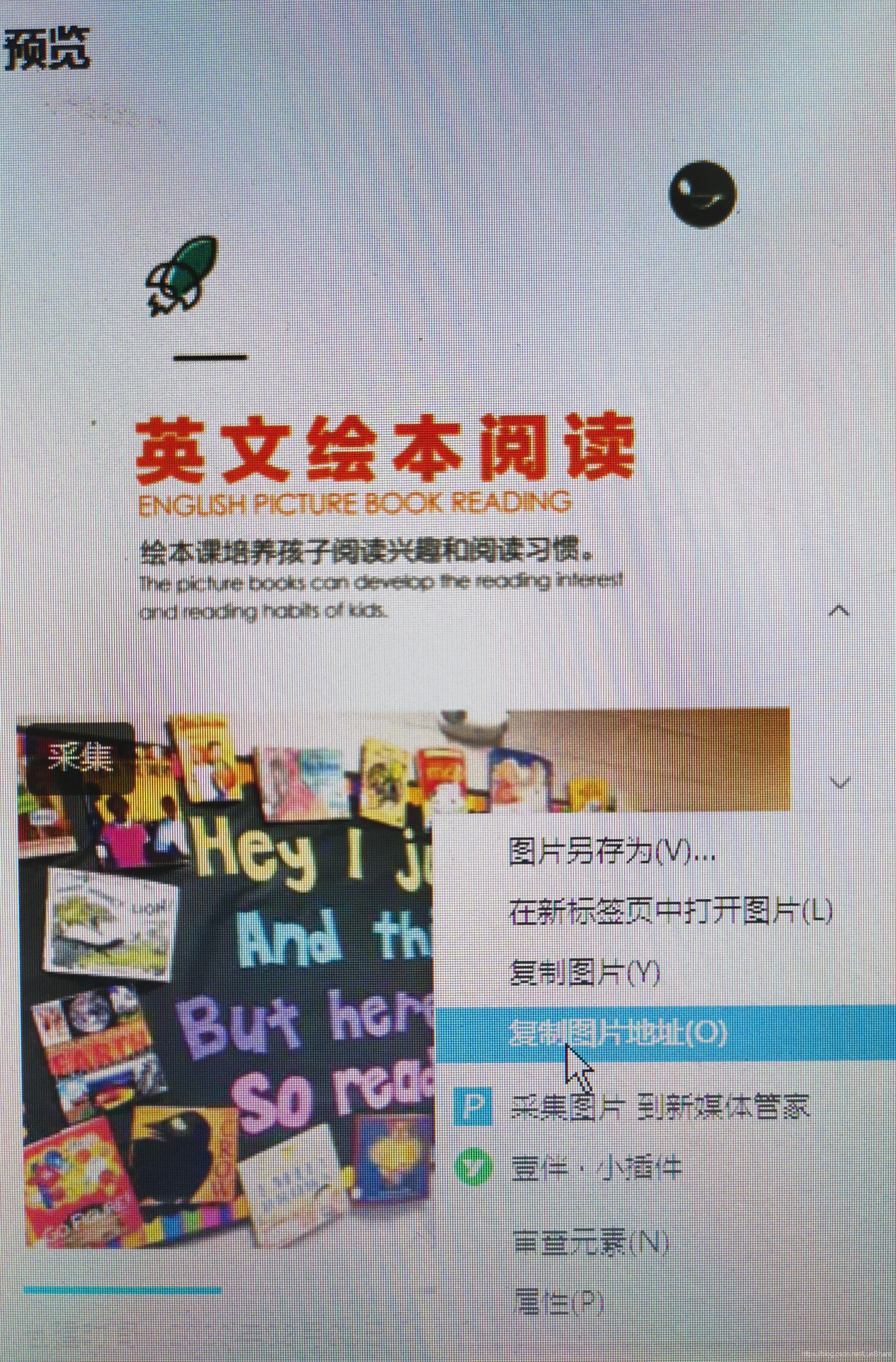 右键复制图片地址。如图: